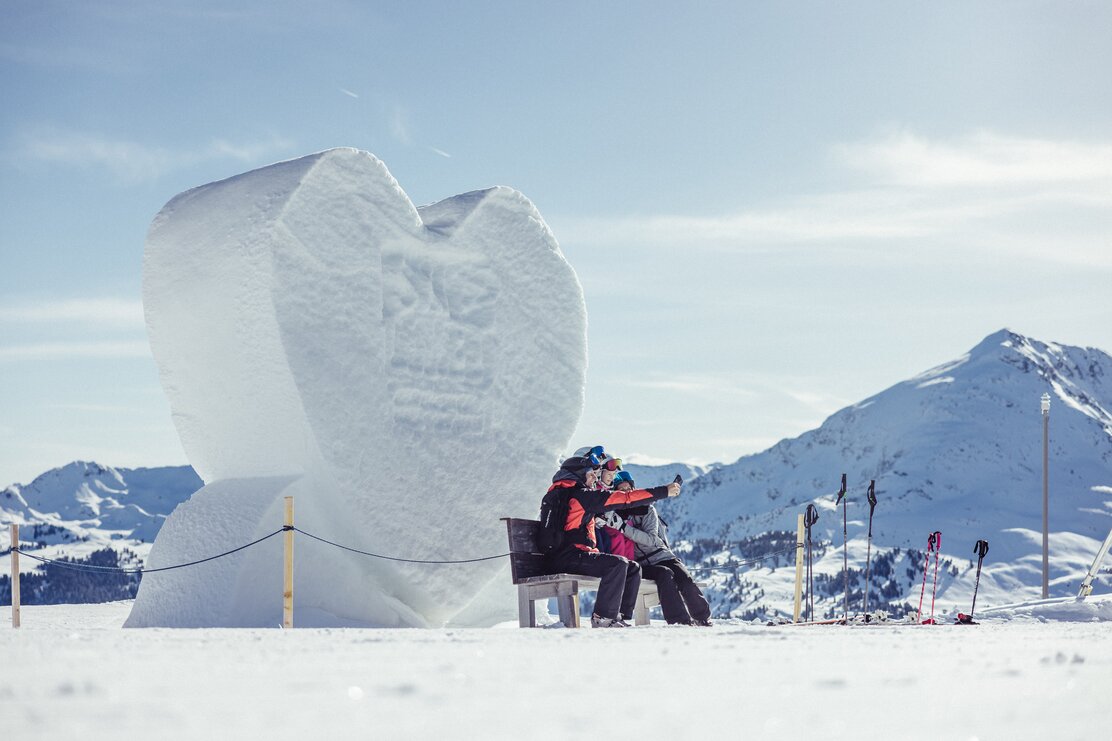 Am Wiedersberger Horn lohnt sich ein Abstecher durch die handgefertigte Holztür oberhalb der Pöglbahn – ein traumhafter Fotospot mit Panoramablick. Ganz nah bei der Bergstation der Hornbahn 2000 wartet zudem das beliebte Schneeherz, ein romantisches Motiv hoch über dem Tal.